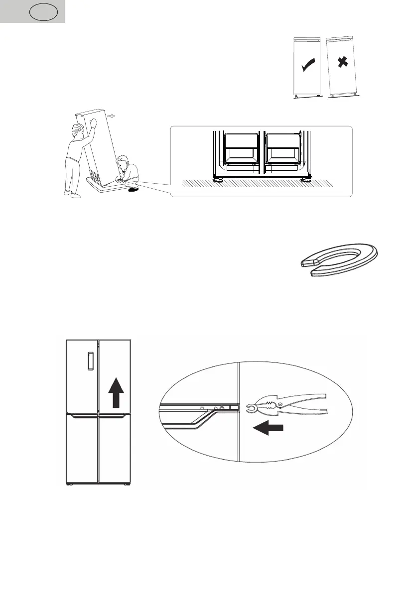 2. If top of upper two doors looks not in a line, please slightly lift lower door and insert