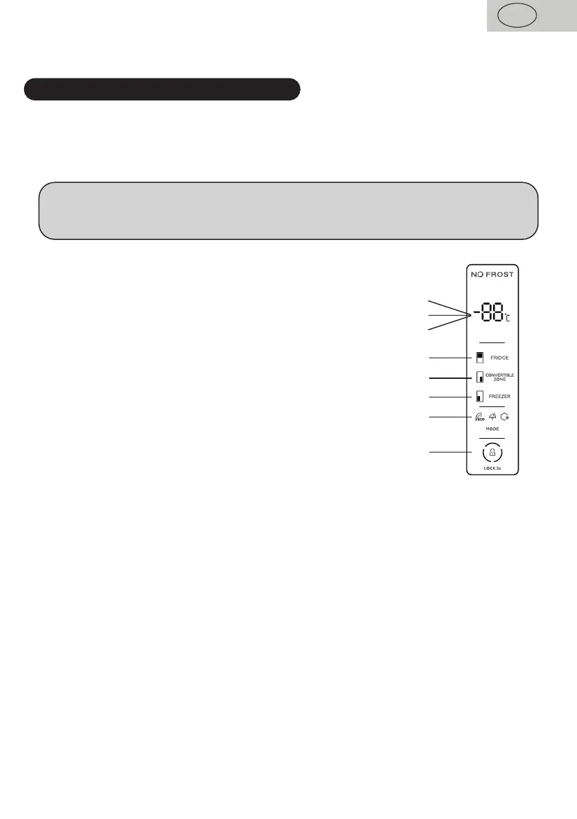 b. A kijelzőn a megfelelő rekesz kiválasztása után a hűtőtér, a fagyasztórekesz és
