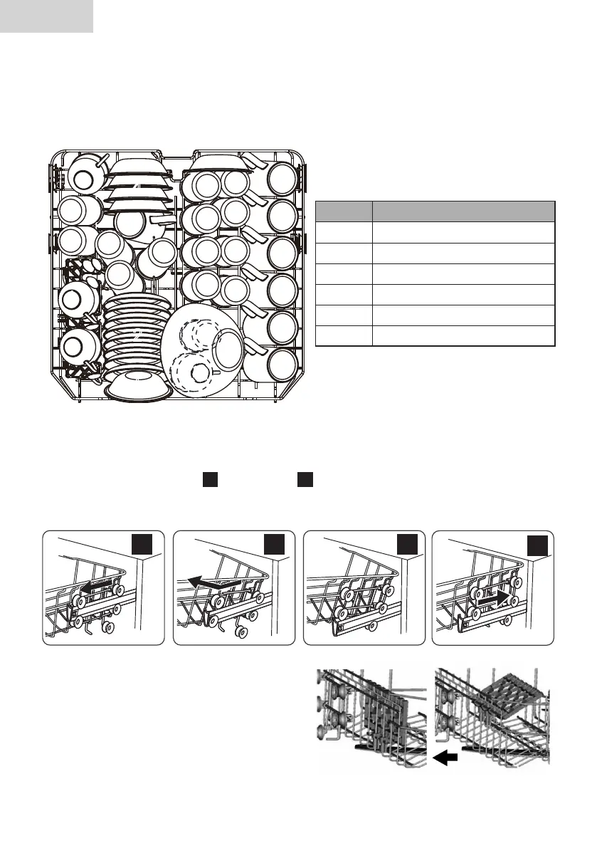 nádobí v horním nebo dolním koši. Výšku horního koše lze upravit tak, že do kolejnic se