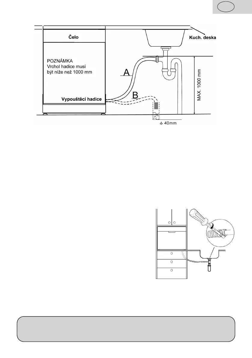 Pokud je dřez 1000 mm nad podlahou, nelze přebytečnou vodu v hadicích vypustit přímo