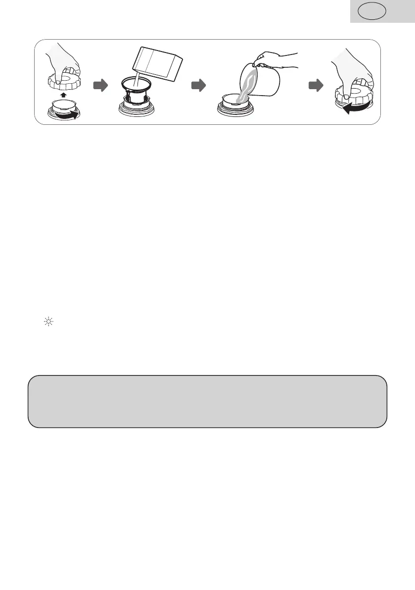 4. Po naplnení nádoby zaskrutkujte na doraz viečko staré po smere hodinových ručičiek.