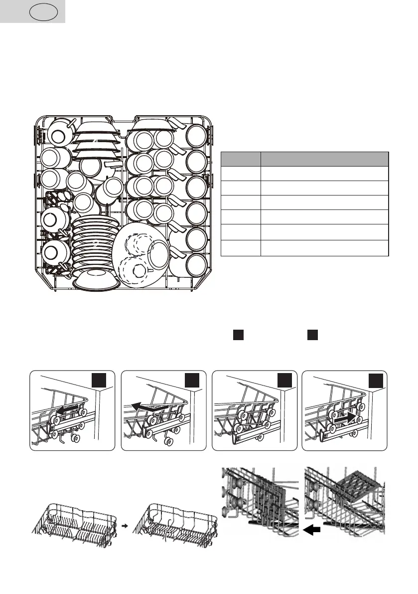 utensils both for the upper/lower basket. The height of the upper basket can be adjusted
