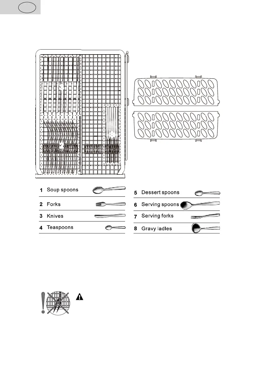 Cutlery should be placed in the cutlery rack separately from each other in the appropriate