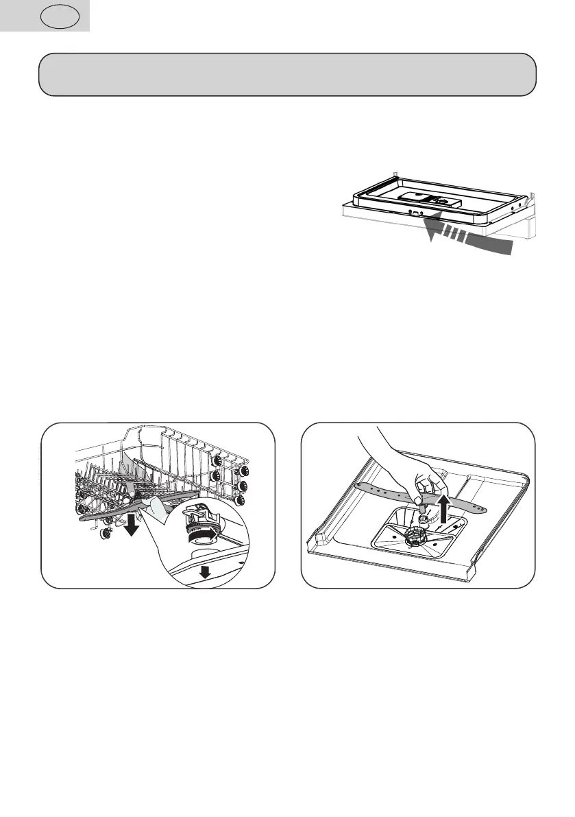 • To remove the spray arm, grasp the center of the arm and pull upwards to remove the