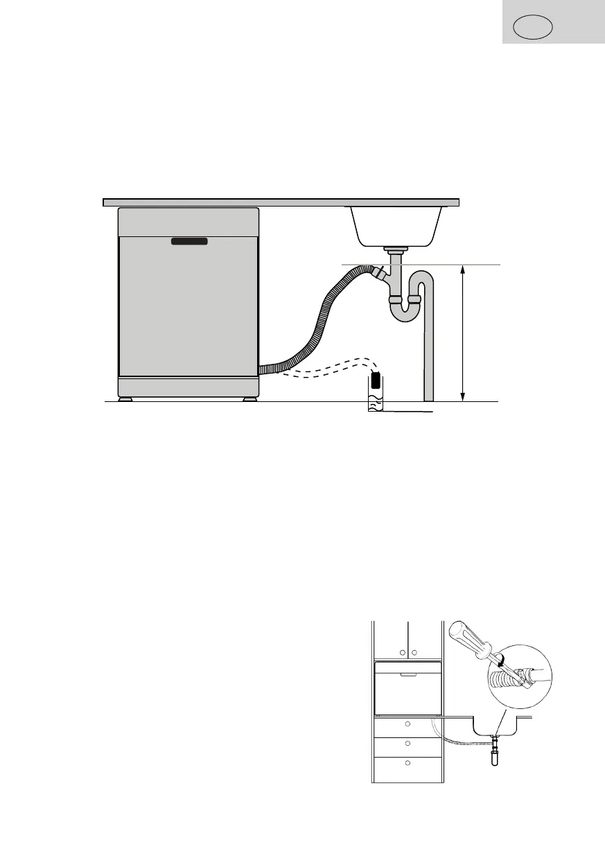 Pokud je dřez 1000 mm nad podlahou, nelze přebytečnou vodu v hadicích vypustit přímo