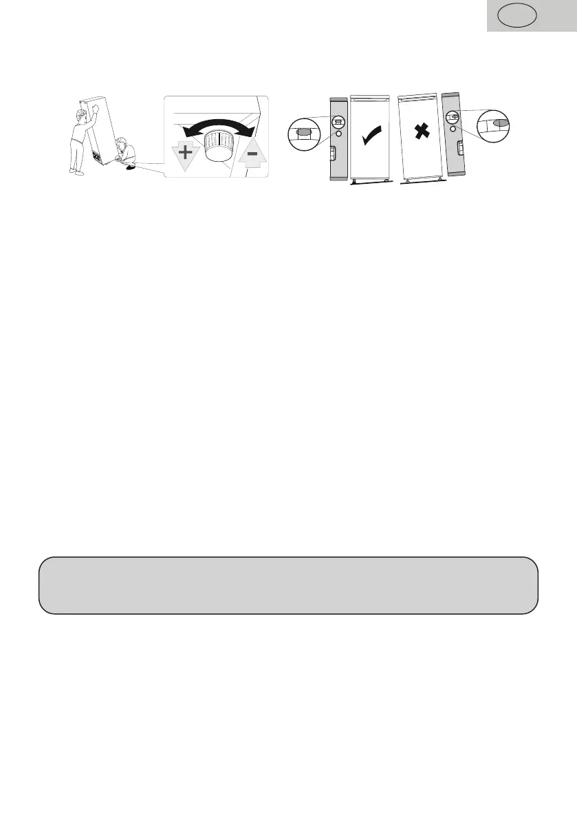 • Vyrovnanie vykonáte pomocou dvoch nastaviteľných nožičiek na prednej strane spotrebiča.