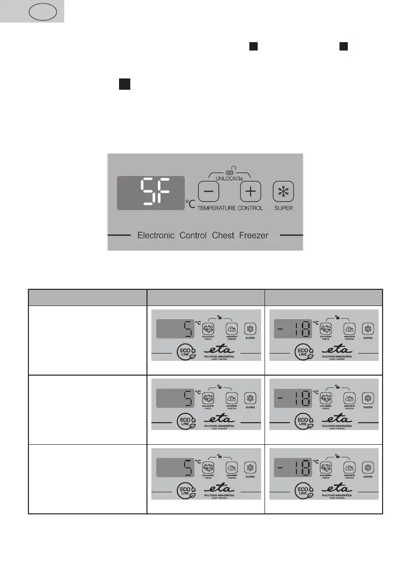 • Stlačte tlačidlo SUPER a mraznička aktivuje funkciu rýchleho zmrazenia SF.