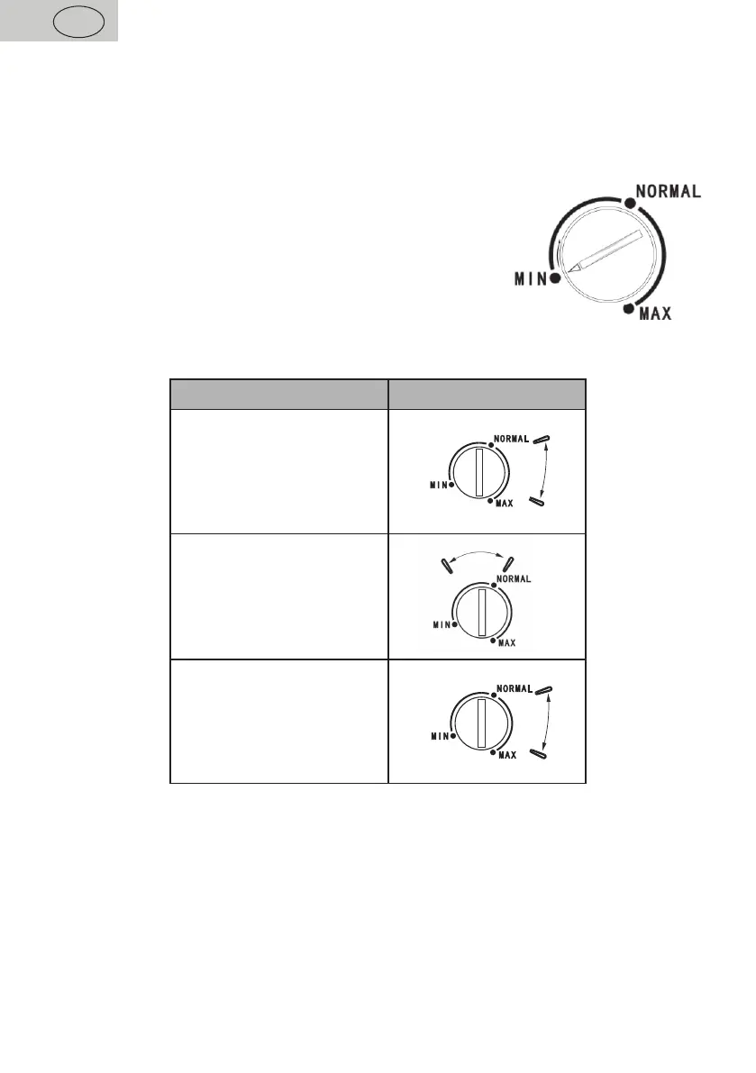 • Pro normální provoz je obvykle dostačující nastavení uprostřed (viz ovladač termostatu).