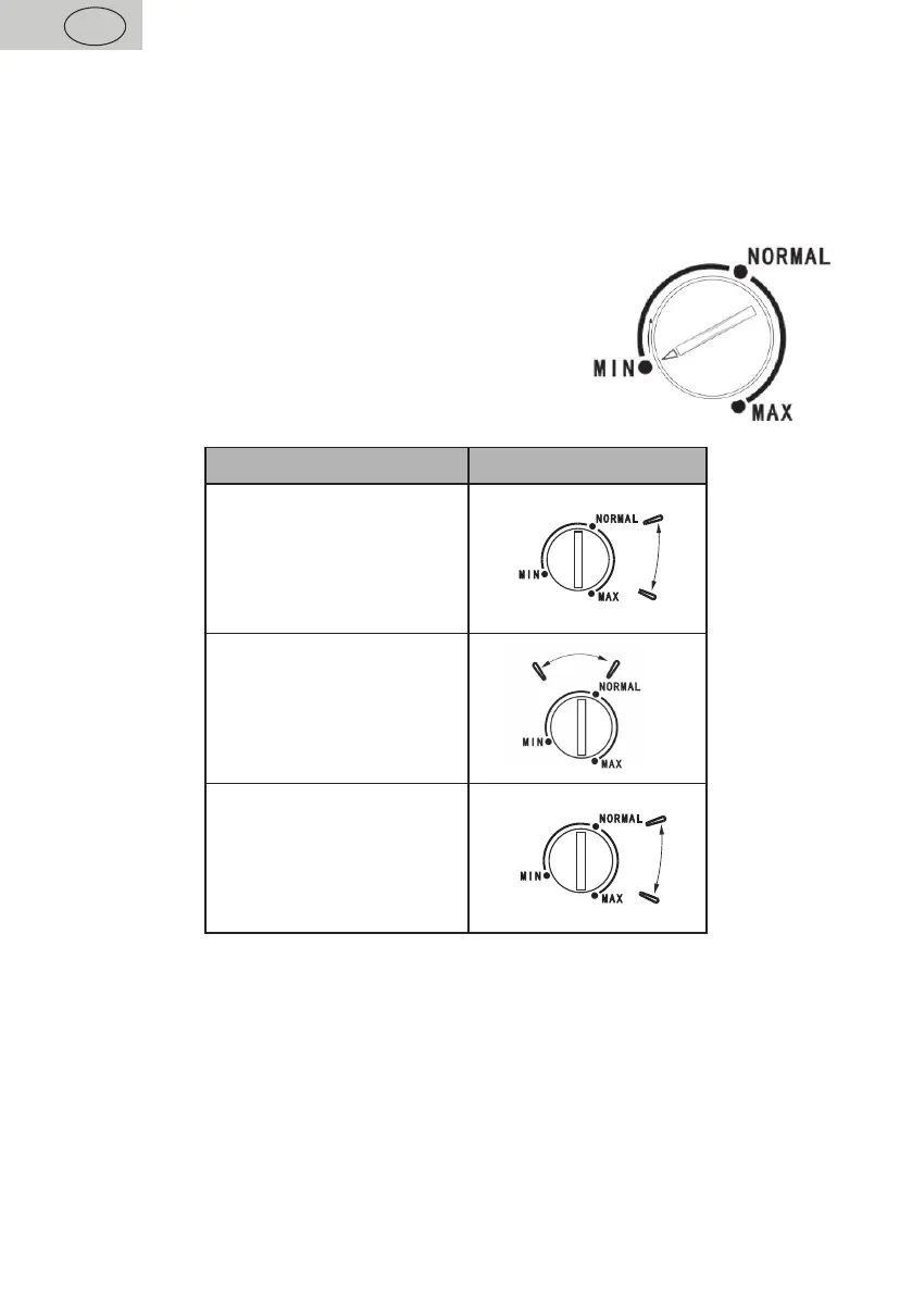 • A közepes beállítás általában elegendő a normál működéshez (lásd a termosztát gombját).