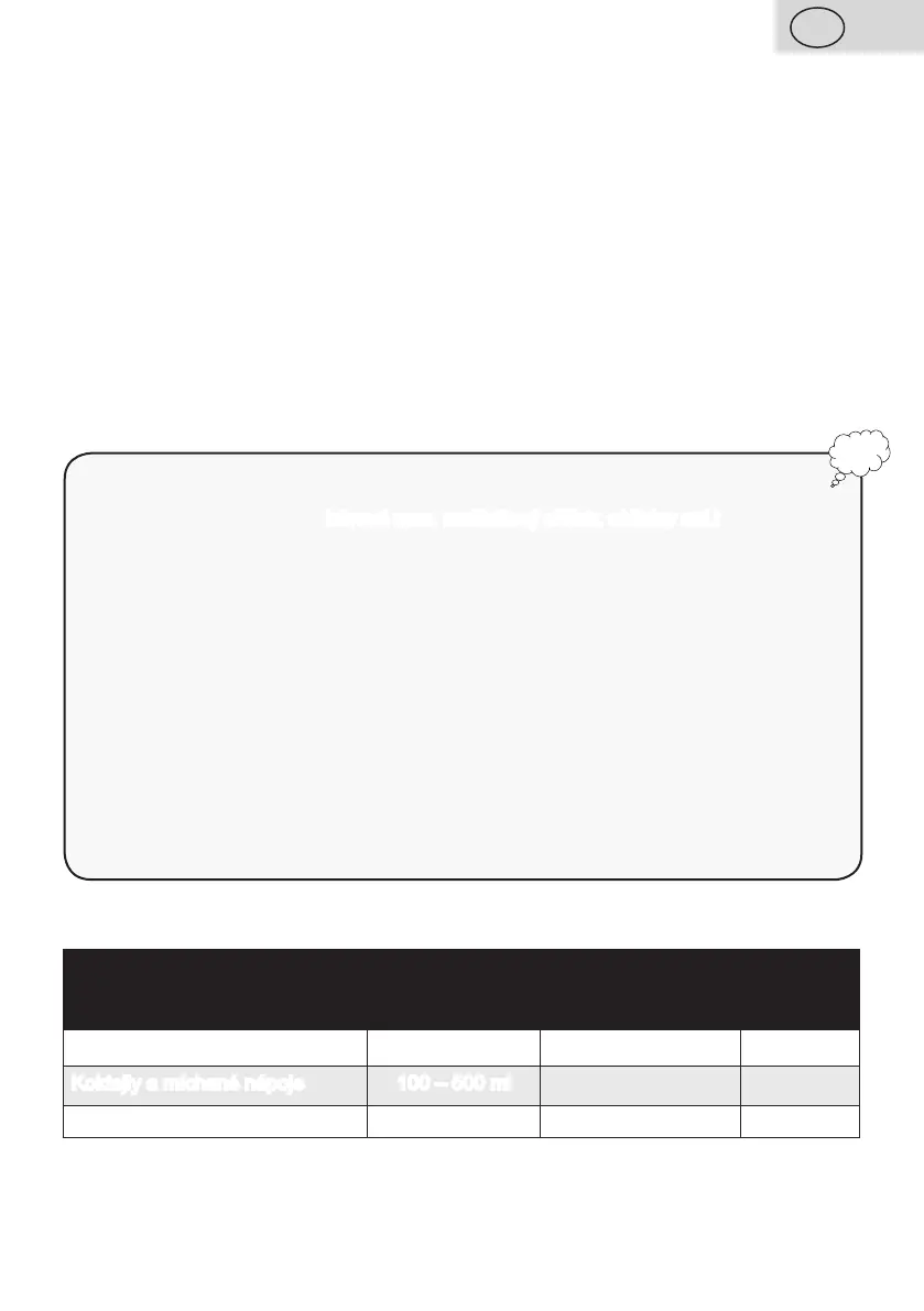 nápoj rovnou pít. Časy příprav (zpracování) potravin jsou pouze přibližné, závisejí na
