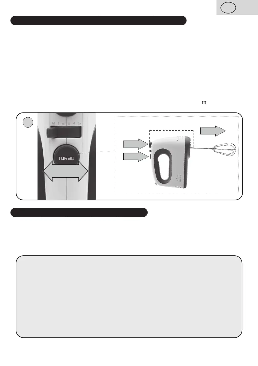 – Nigdy nie używać mieszadeł do mieszania substancji stałych, takich jak ciasto drożdżowe.