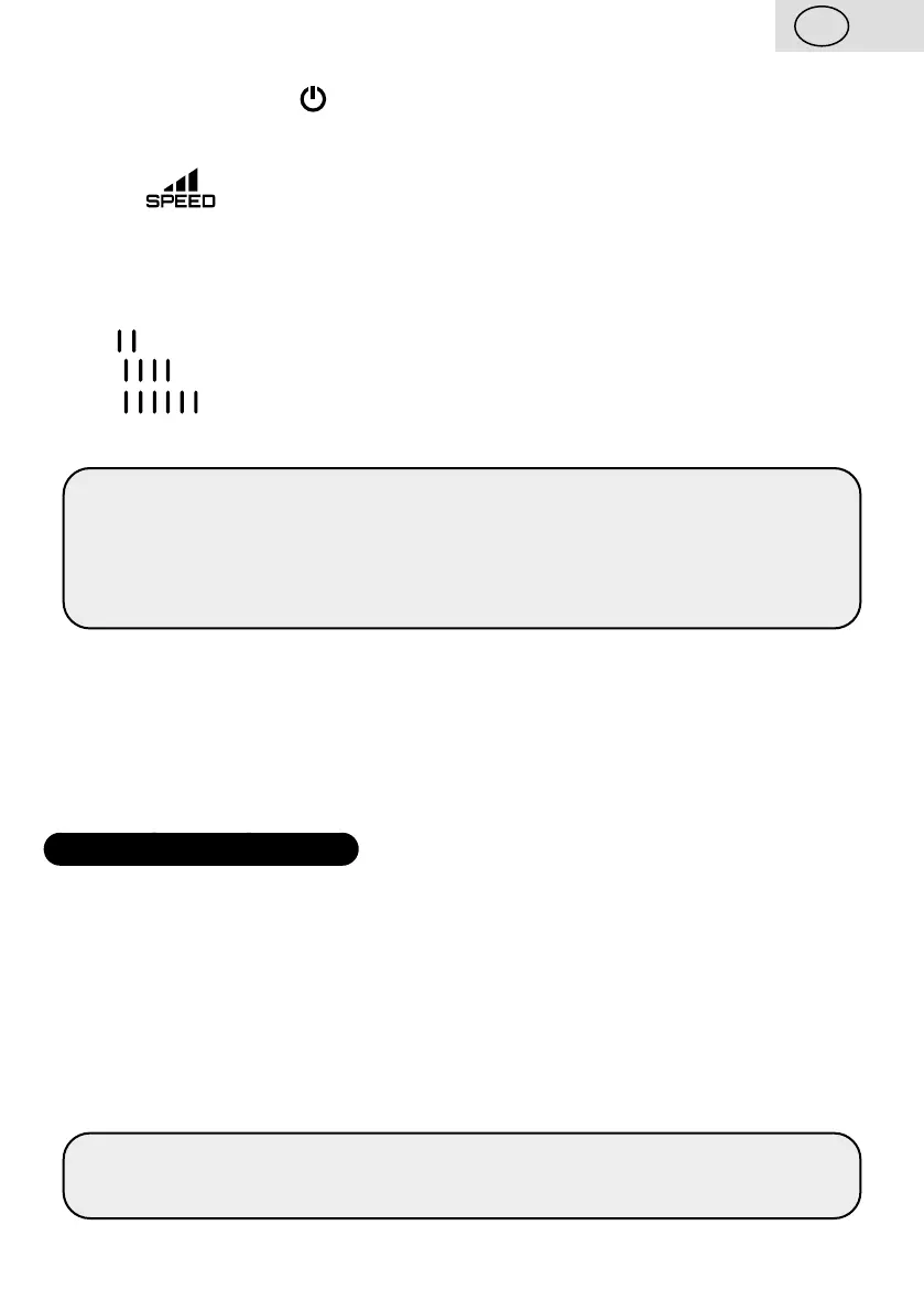 - krátkým dotykem zvýšíte/snížíte úroveň sacího výkonu (nastavený sací výkon je indikován