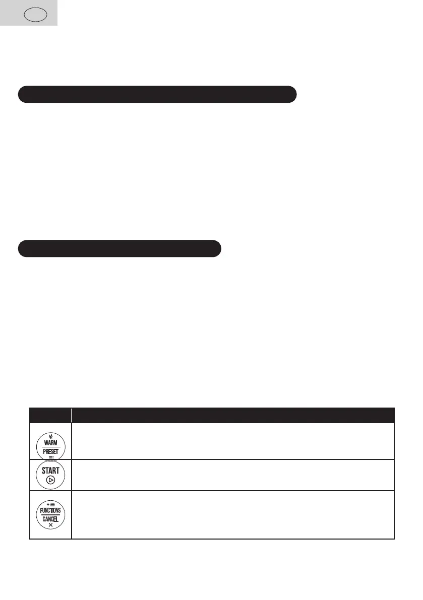 PRESET button - used to set the delayed start and its preset time of 4 hours.