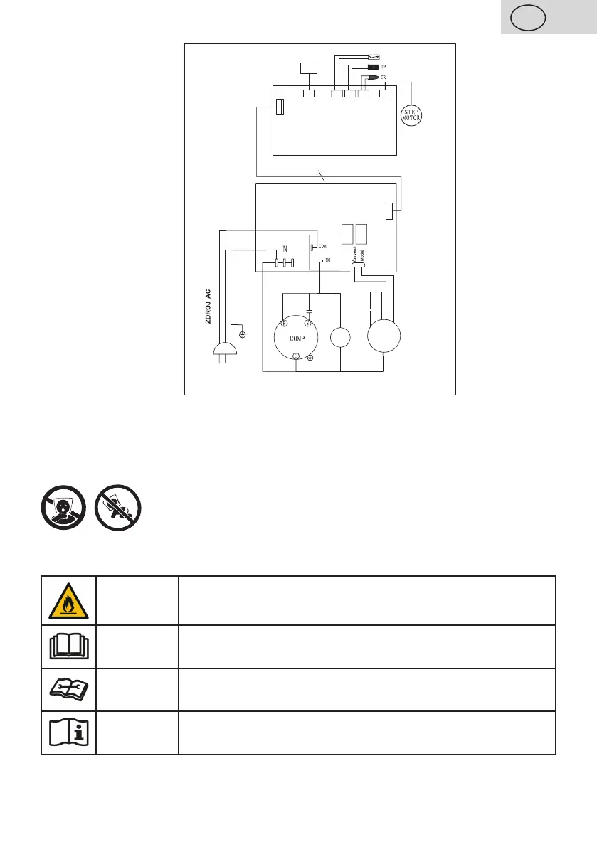 Tento symbol zobrazuje, že toto zařízení používá hořlavé chladivo.