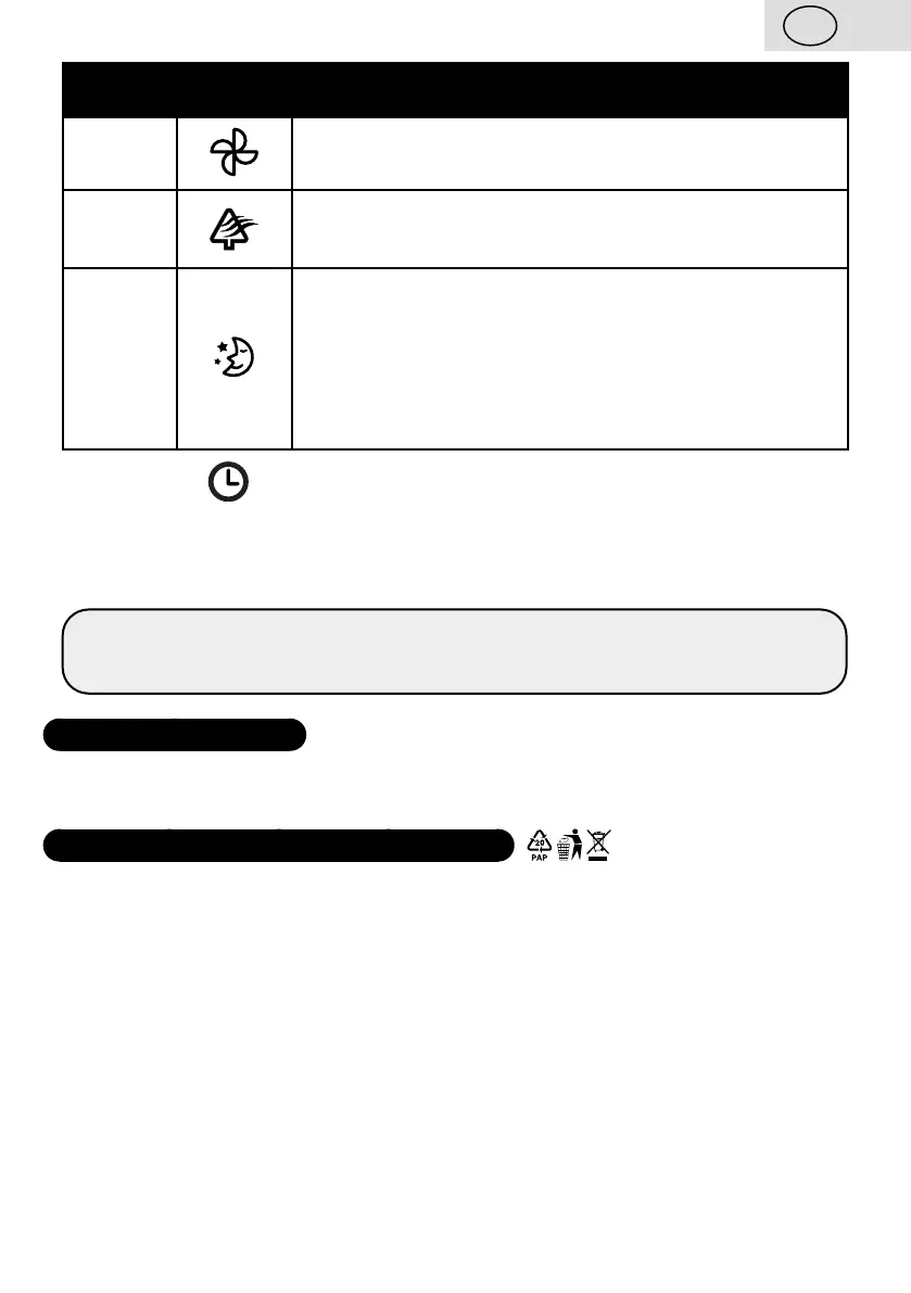 – The NORMAL / NATURAL / SLEEP operating modes as well as the timer can be