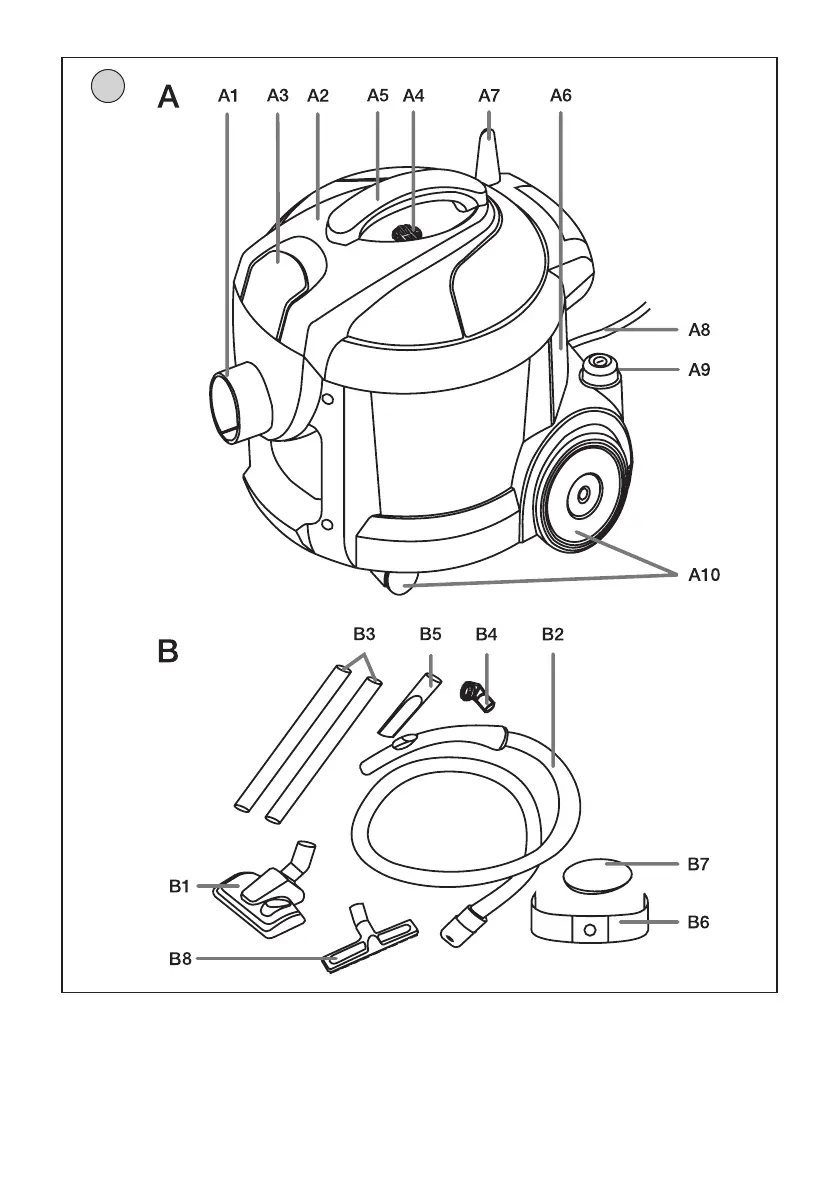 A képek csak illusztrációk; a tartozékok és a porszívó kis mértékben eltérhetnek.