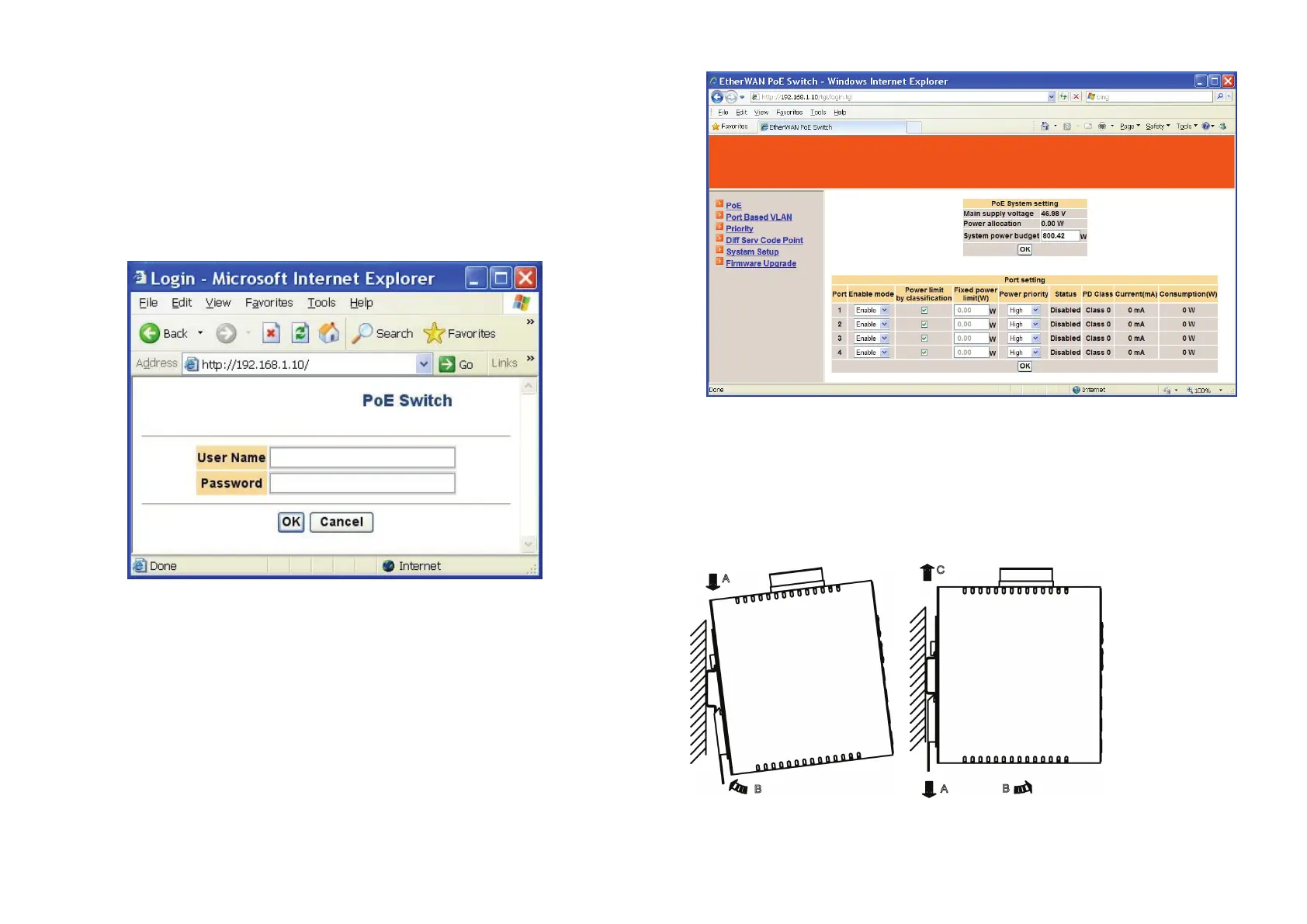 Specify the default IP address (192.168.1.10) of the switch in the web browser. A login window will be