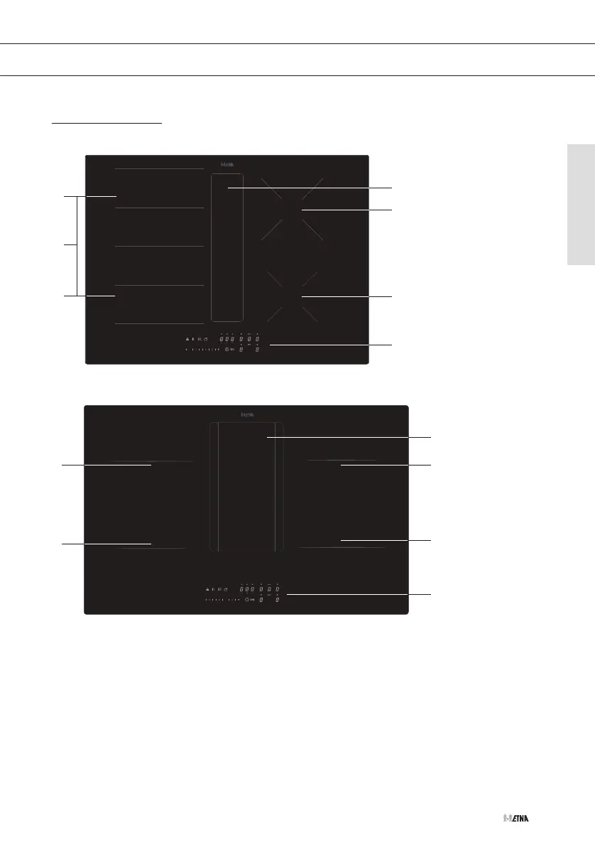3. Gekoppelde kookzones links 210 x 390 mm / 3,7 kW
