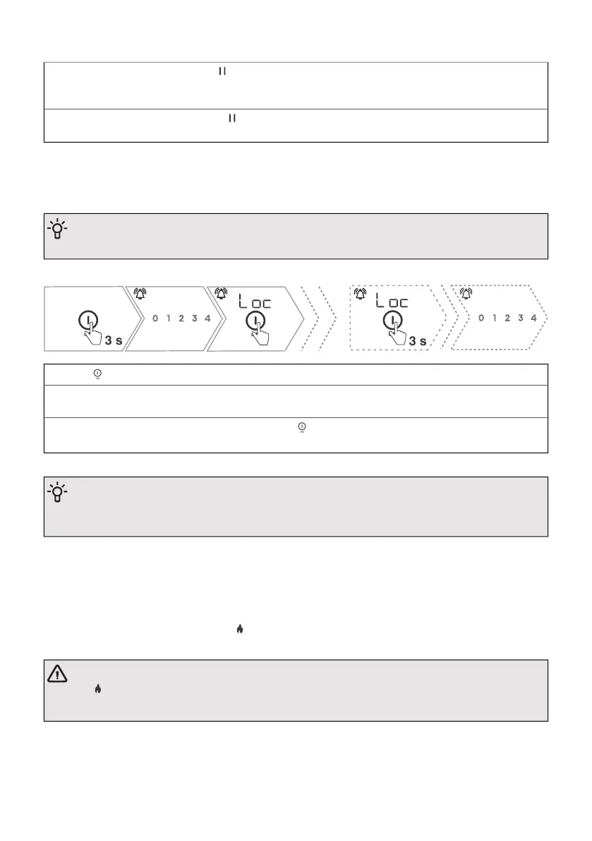 2. Op het display van de timerfunctie wordt ‘Loc’ weergegeven. Er klinkt een pieptoon. De kookplaat