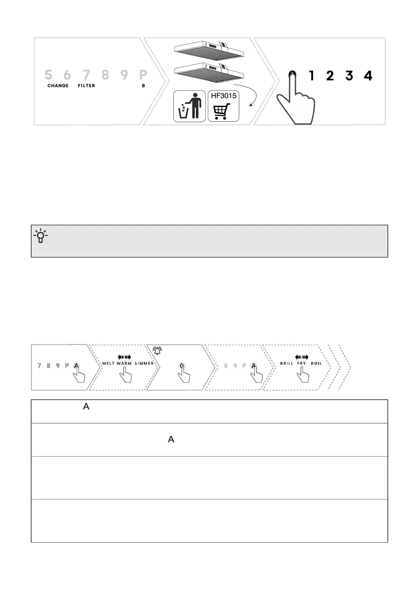 Het toestel heeft zes extra functies: Smelten (MELT), Opwarmen (WARM), Sudderen (SIMMER), Grillen