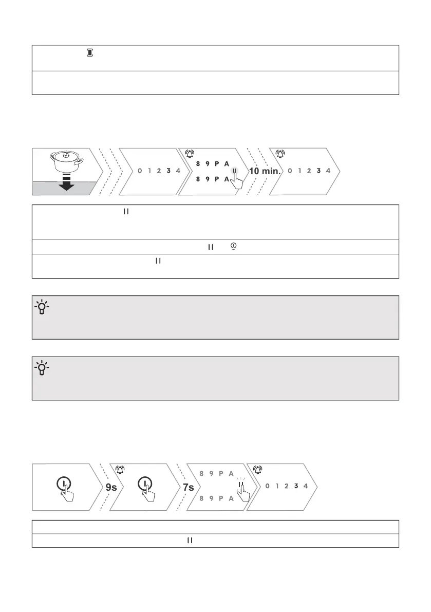 1. Schakel binnen 9 seconden na het uitschakelen de kookplaat weer in.
