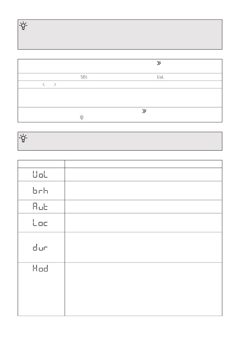 5. Verlaat de gebruiksinstellingenmenu door 3 seconden toets aan te raken (gewijzigde instellingen