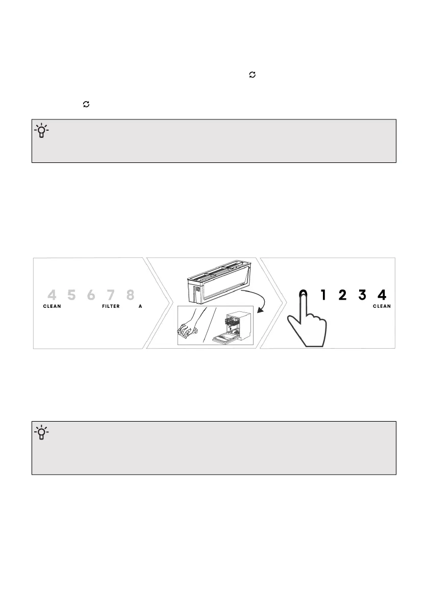 De afzuigmodule heeft een vetfilterindicatie 'CLEAN FILTER A'. Deze indicatie knippert wanneer de