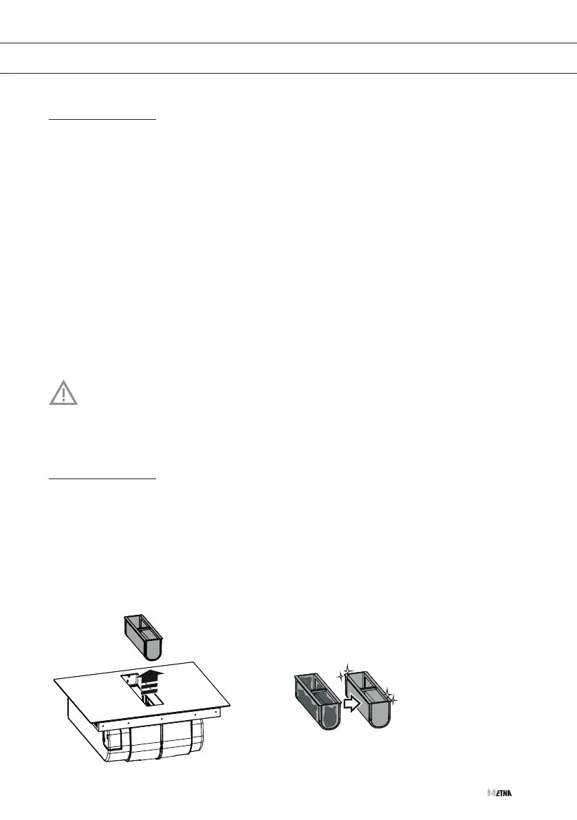 • Reinig het vetfilter, indien in gebruik, minimaal eenmaal per maand (of wanneer het systeem