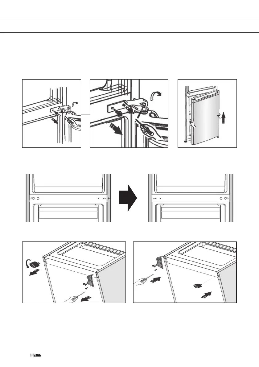 7. Til de de onderste deur voorzichtig uit het onderste scharnier en plaats hem op een zachte