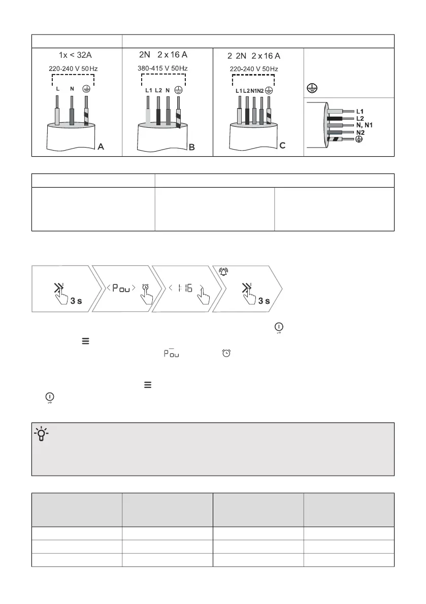 van de stroom per fase. Houd 3 seconden ingedrukt als u de instellingen wilt opslaan, of druk