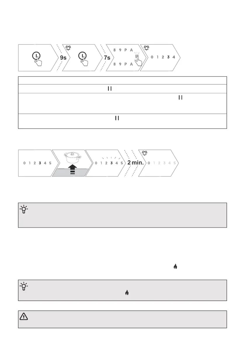 Als de pan niet binnen 2 minuten terug wordt geplaatst op de kookzone, klinkt er een