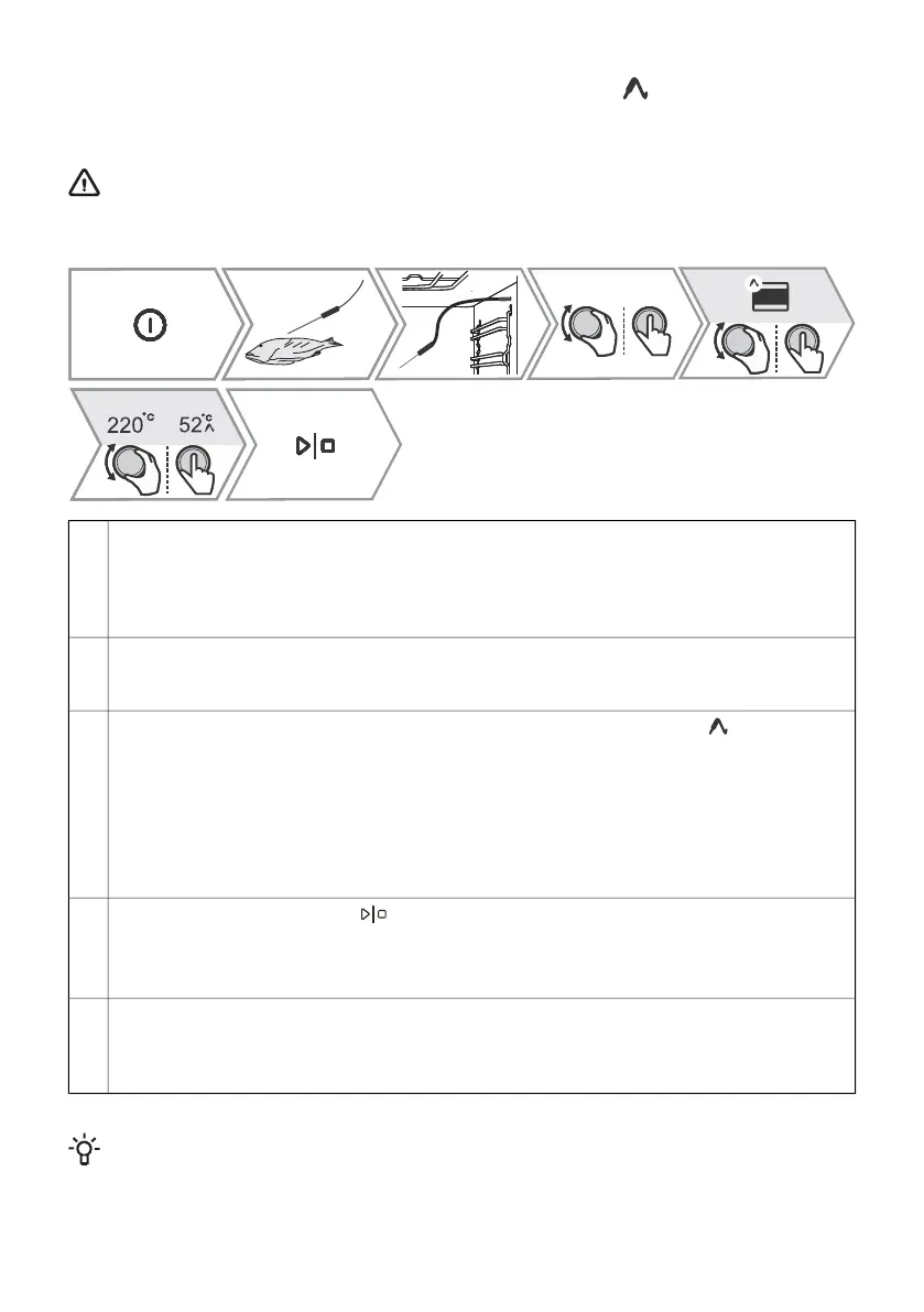 OPMERKING: het bereiden met de temperatuursonde kan pas beginnen wanneer het huidige
