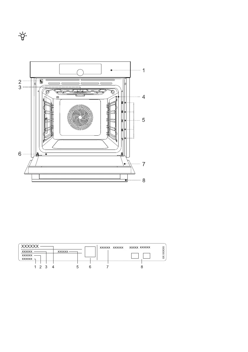 Een typeplaatje met basisinformatie over het apparaat is aan de rand van de oven bevestigd.