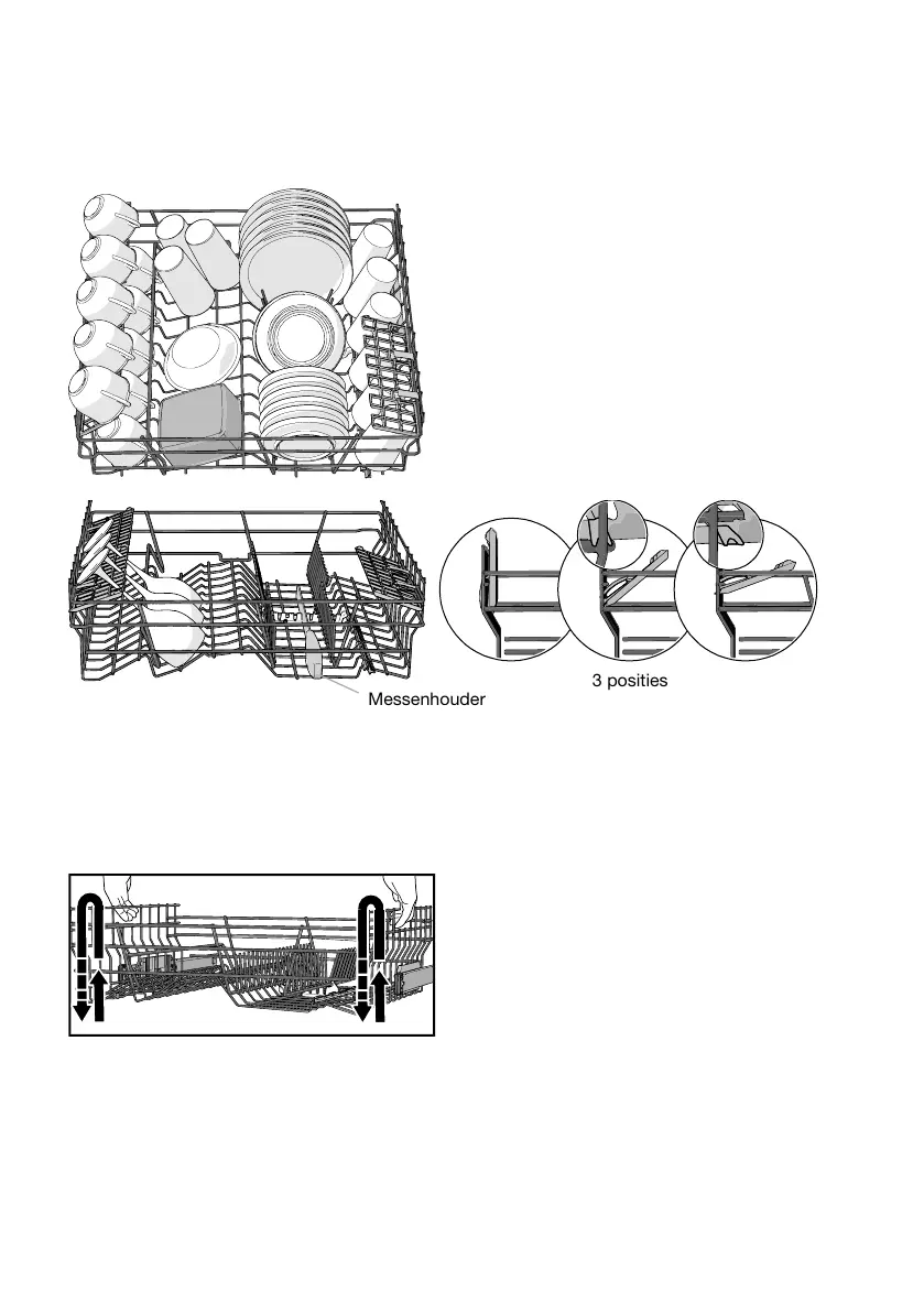 Zet glazen, kopjes, schalen, dessertborden en schotels in de bovenkorf. Zorg dat alle vuile oppervlakken