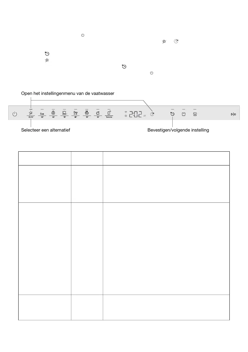 Om het instellingenmenu van de vaatwasser te openen, houdt u en ingedrukt totdat SEt op