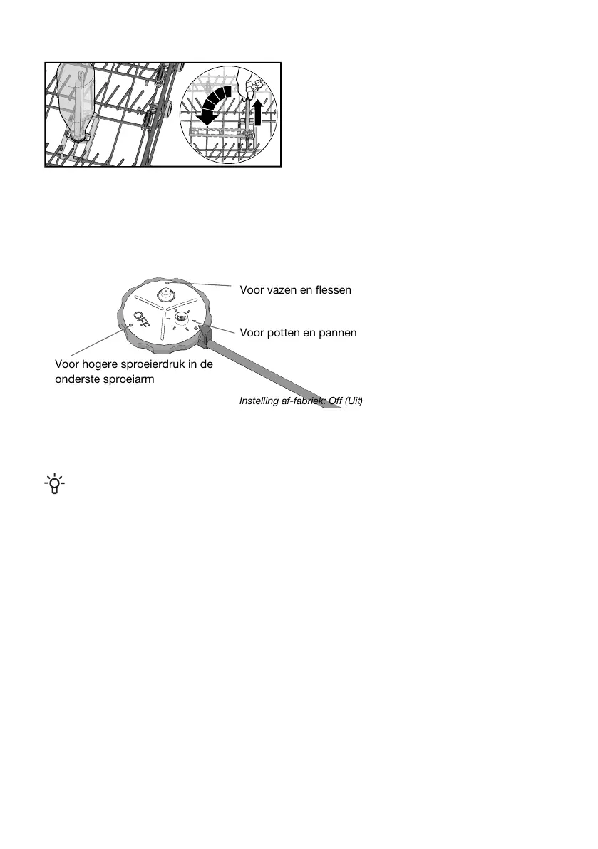 vazen en flessen. Schakel de powerzones van de vaatwasser uit als u een grotere sproeierdruk in de