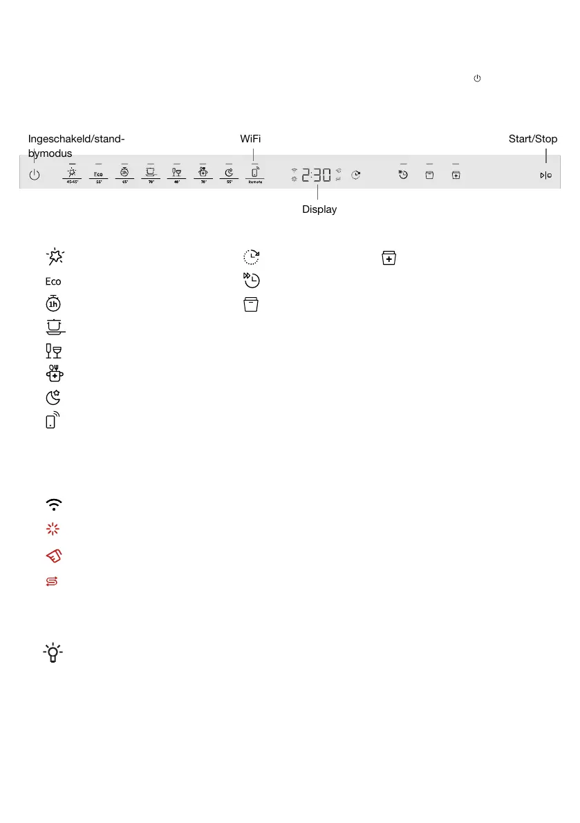 Installeer de vaatwasser, zie hoofdstuk Installatie. Open vervolgens de deur en druk op .