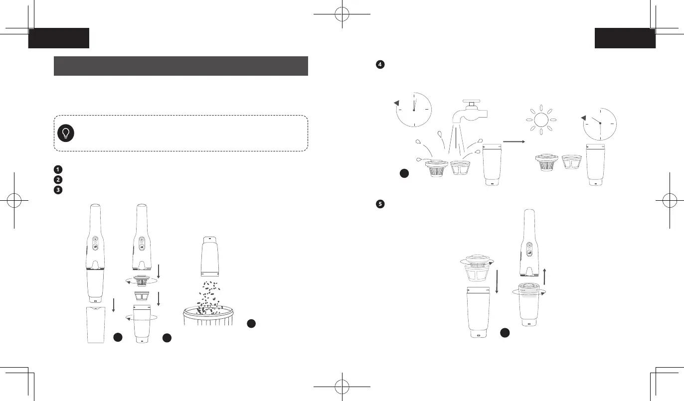 Rinse the filters and dust cup. Air-dry them completely before next use.