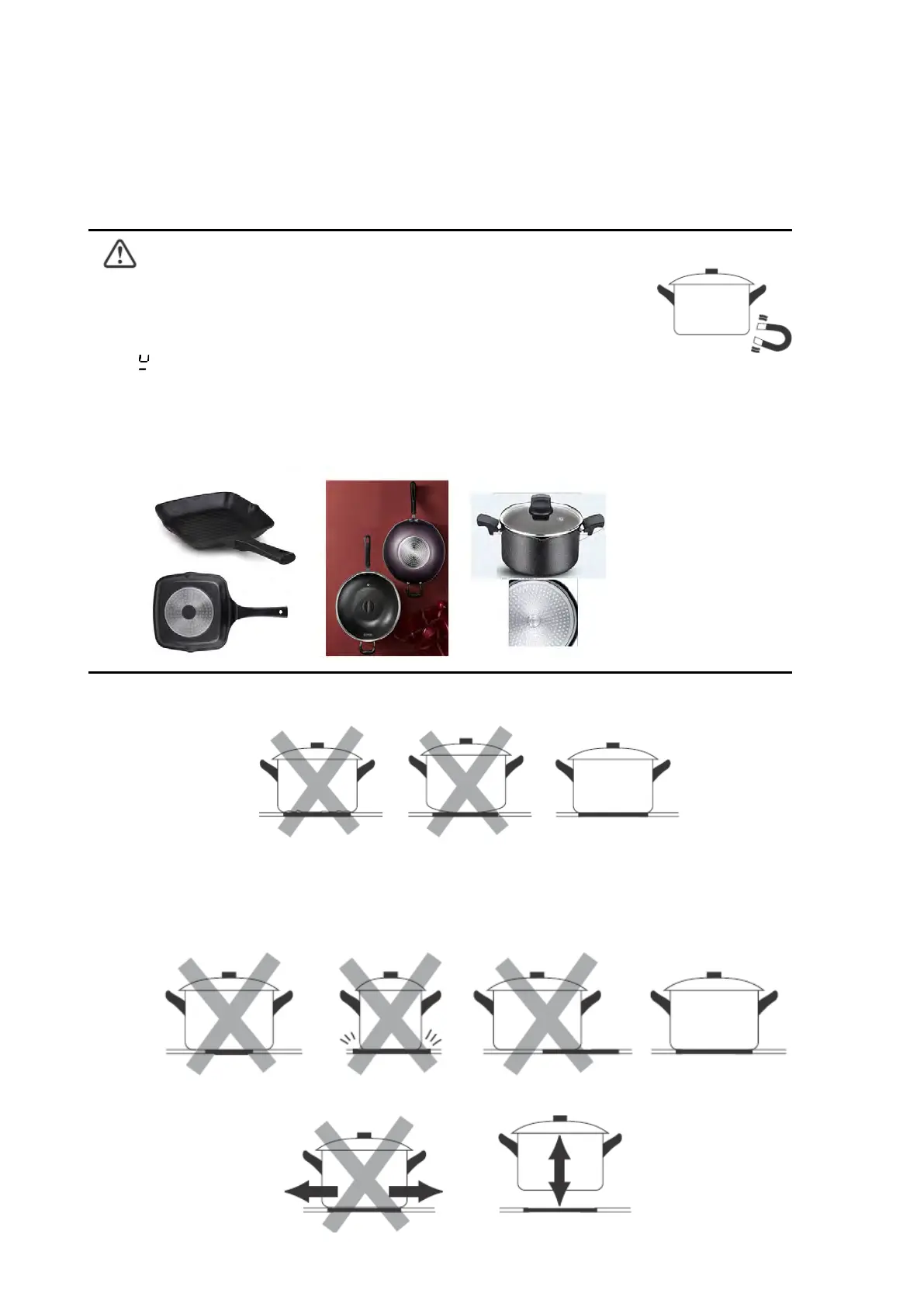 • Cookware made from the following materials is not suitable: pure stainless steel, aluminium or copper