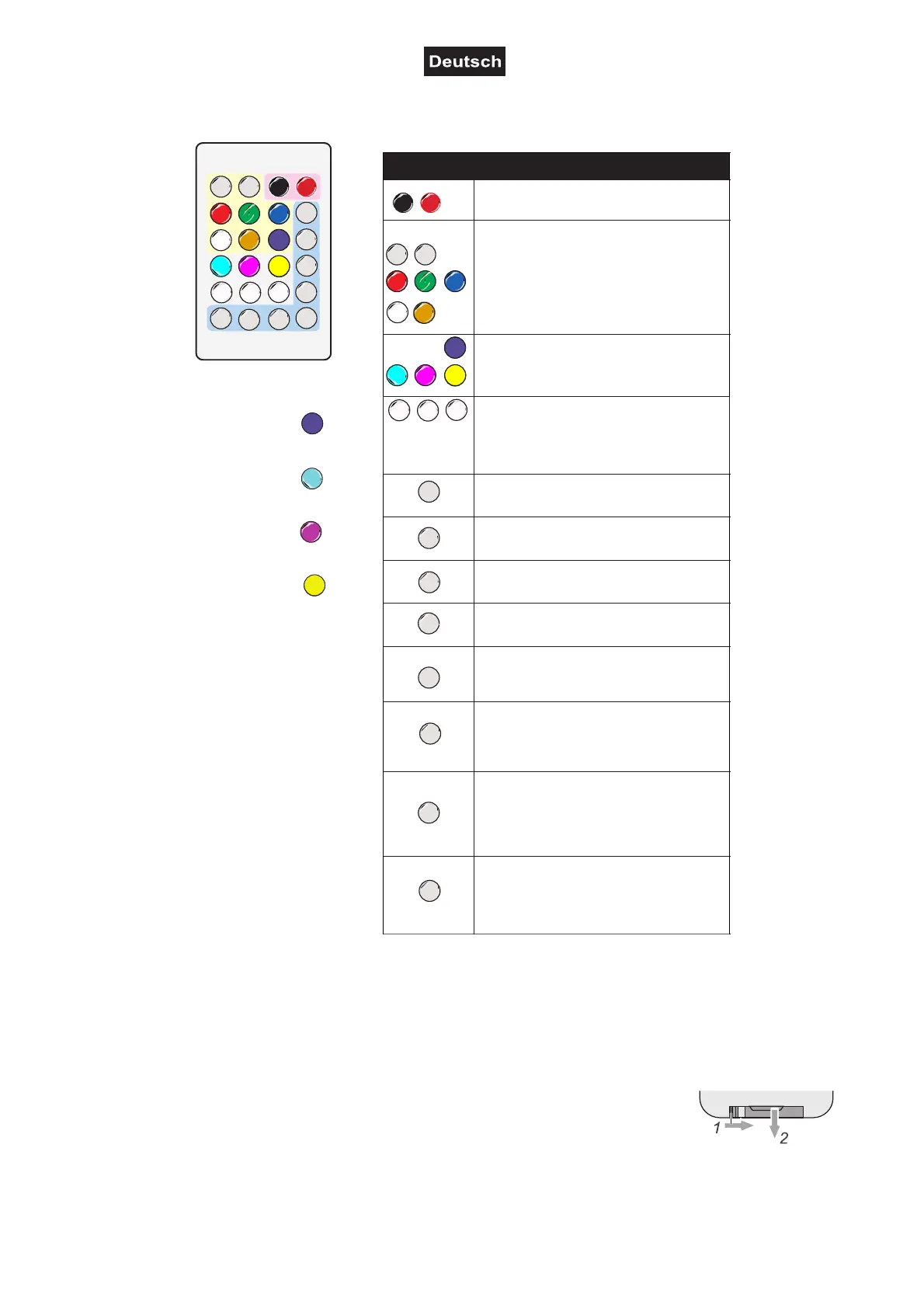 • Entnehmen Sie vorsichtshalber die Batterie aus der Fernbedienung bei längerem Nichtgebrauch.