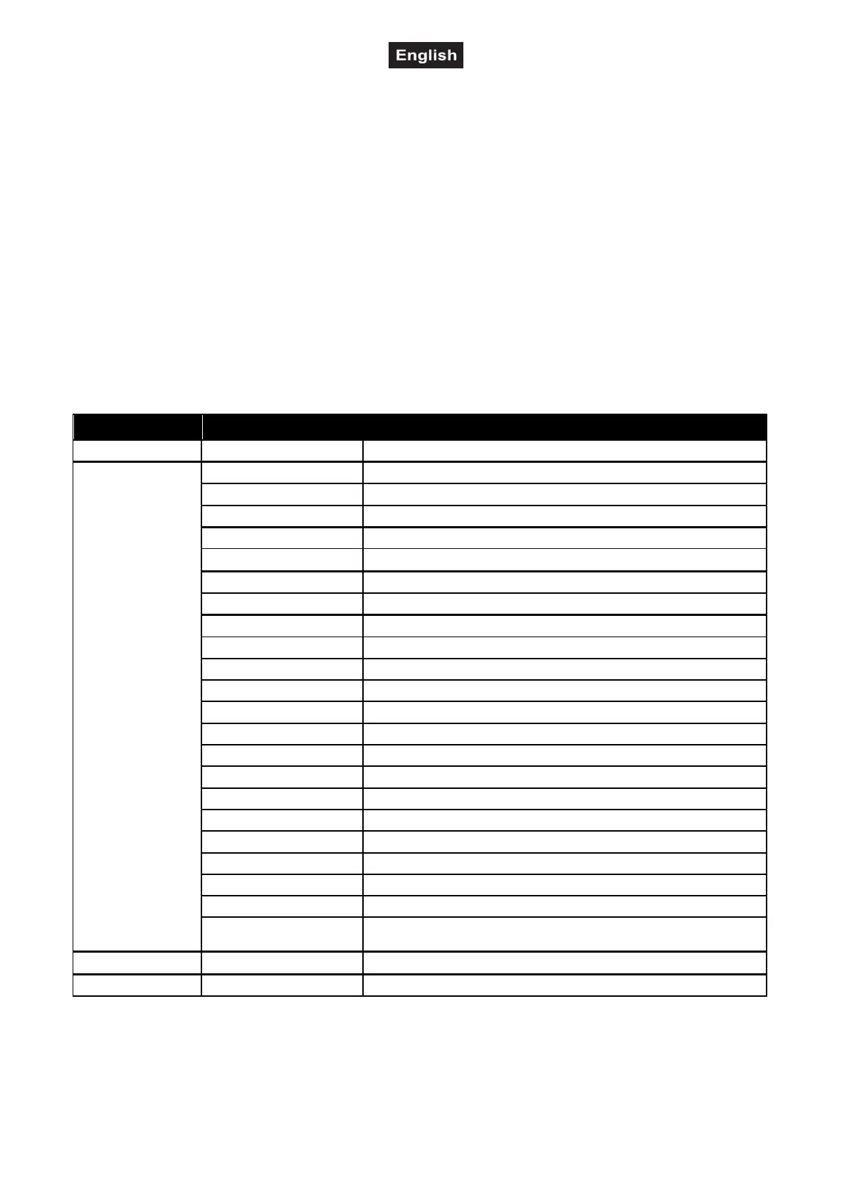 Main menu Sub menu Function