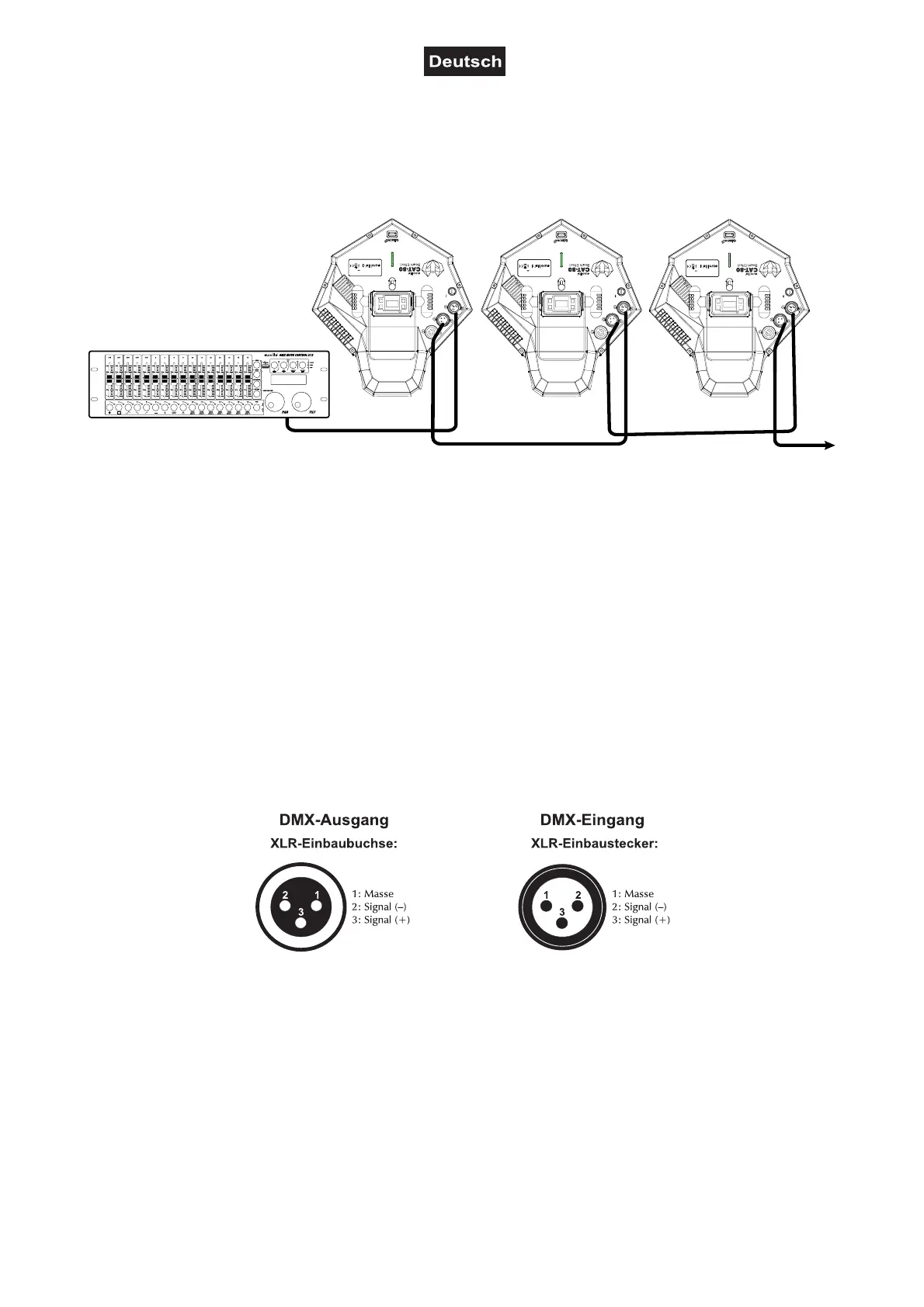 4 Ab einer Kabellänge von 300 m oder nach 32 angeschlossenen DMX-Geräten sollte das Signal mit Hilfe