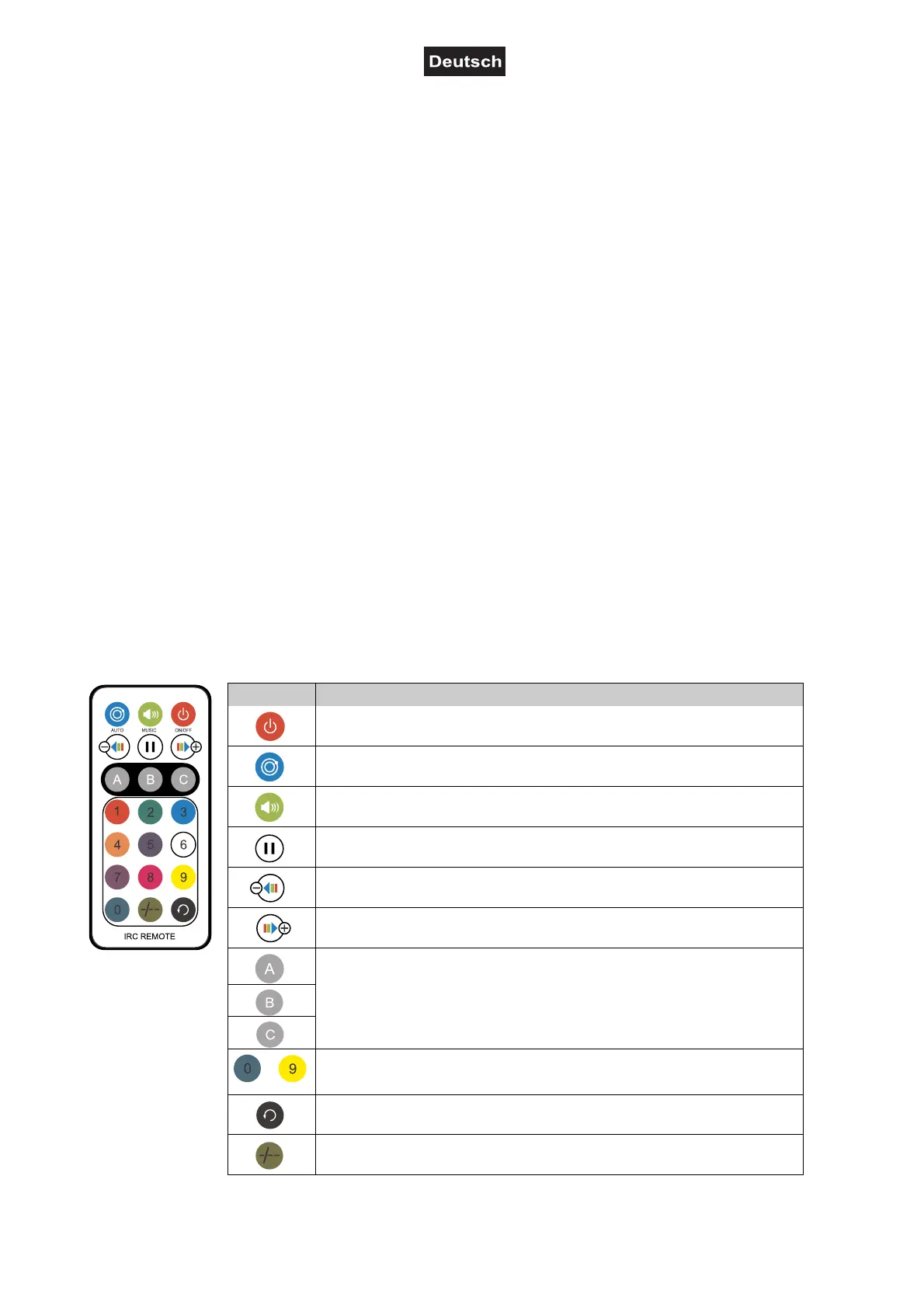 Musiksteuerung: mehrfach drücken wechselt von Programm 1 ~ 14