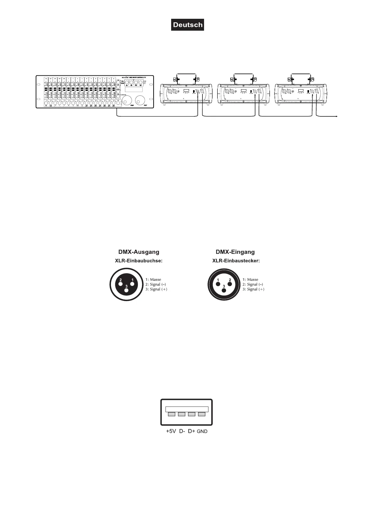 4 Ab einer Kabellänge von 300 m oder nach 32 angeschlossenen DMX-Geräten sollte das Signal mit Hilfe