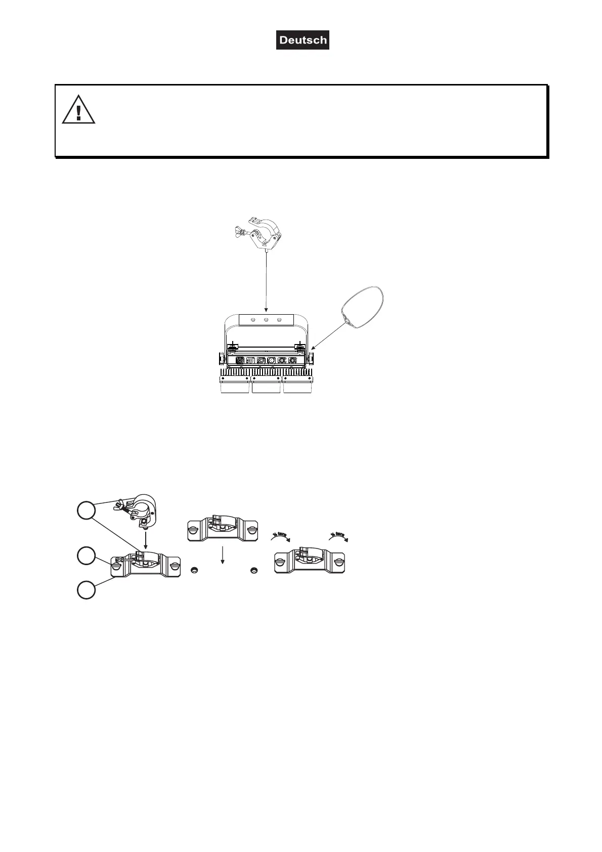 Das Gerät kann über den Montagebügel oder über die mitgelieferten Omega-Bügel an einer Traverse oder