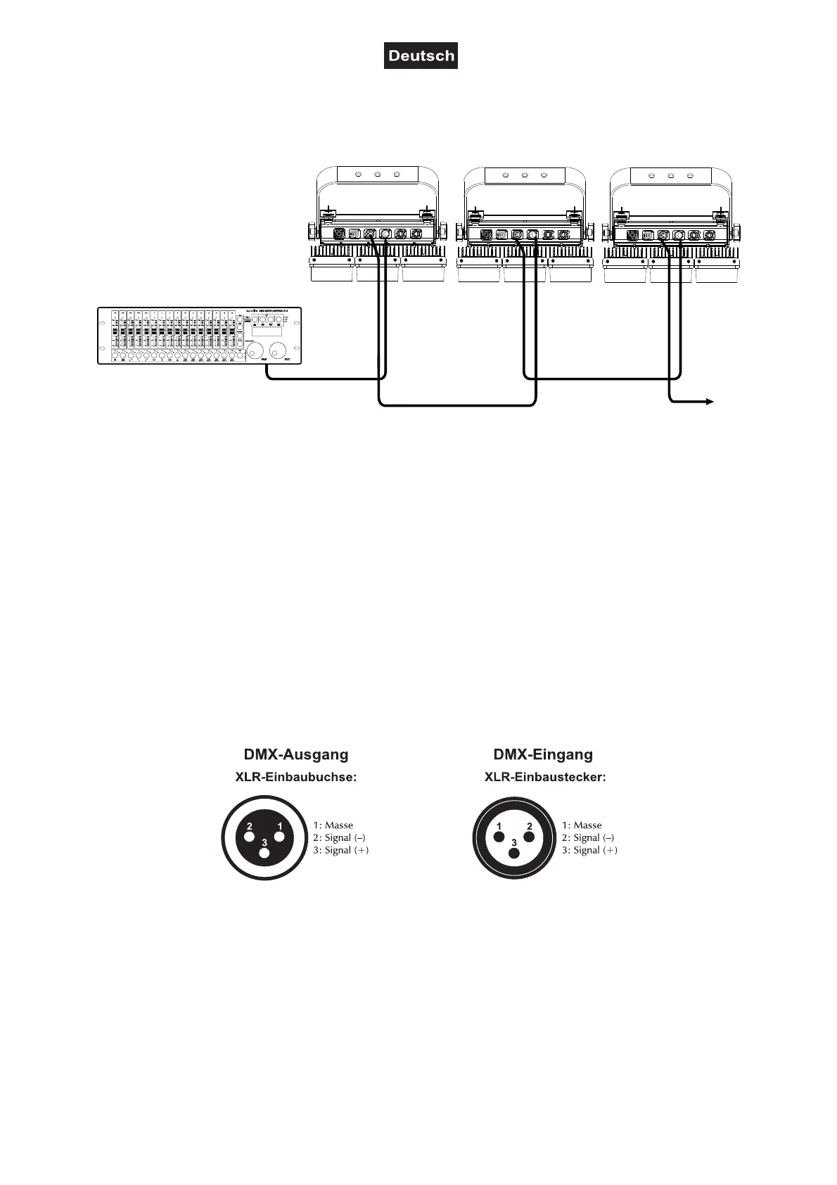 4 Ab einer Kabellänge von 300 m oder nach 32 angeschlossenen DMX-Geräten sollte das Signal mit Hilfe