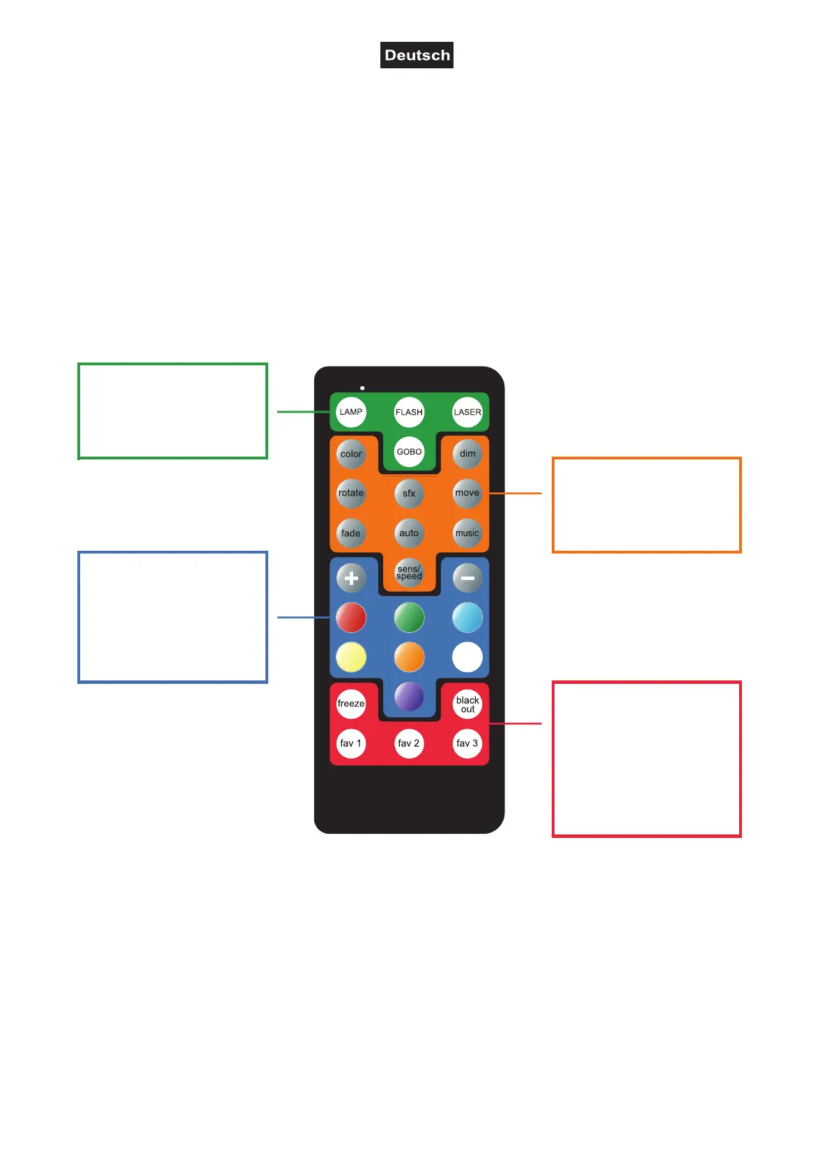 • Drücken Sie LAMP und dann FARBTASTEN, um statische Farben auszuwählen.
