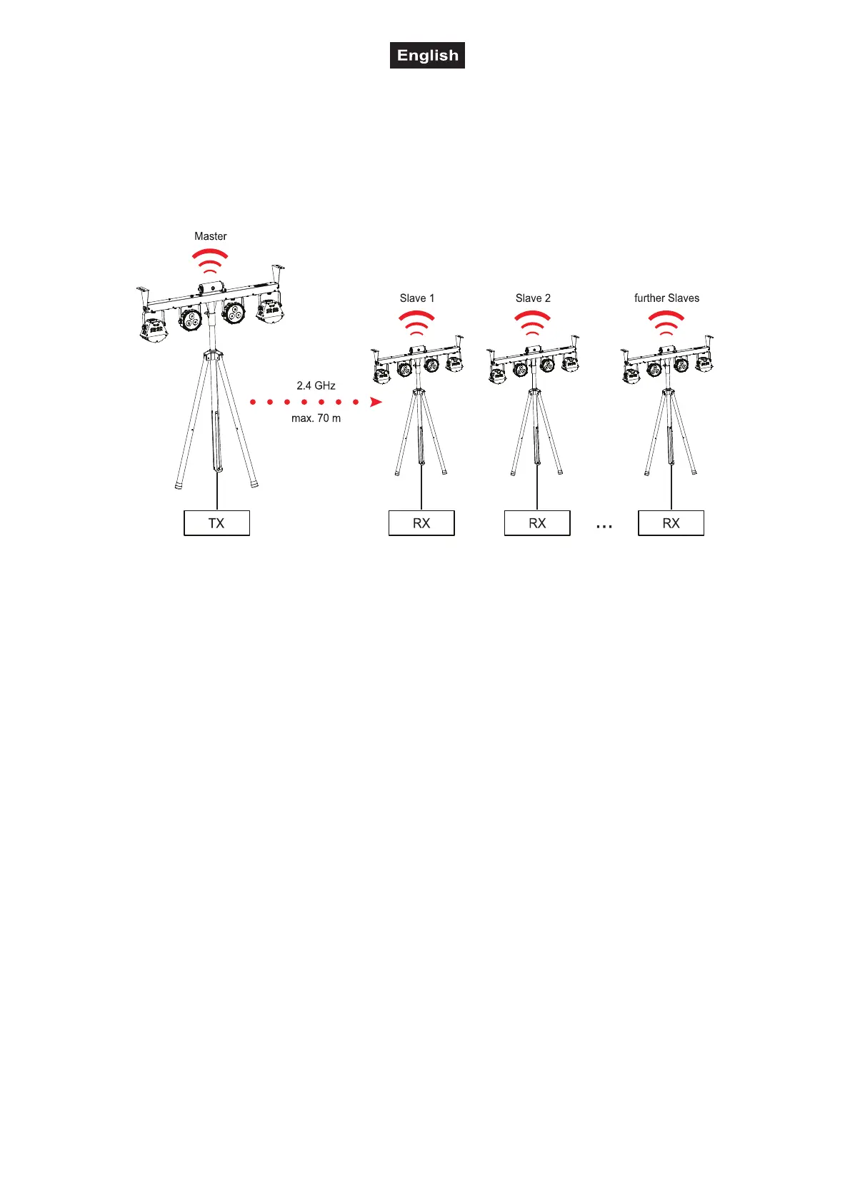 control or the foot switch. The slave devices are set as receivers that work synchronously to the transmitter.