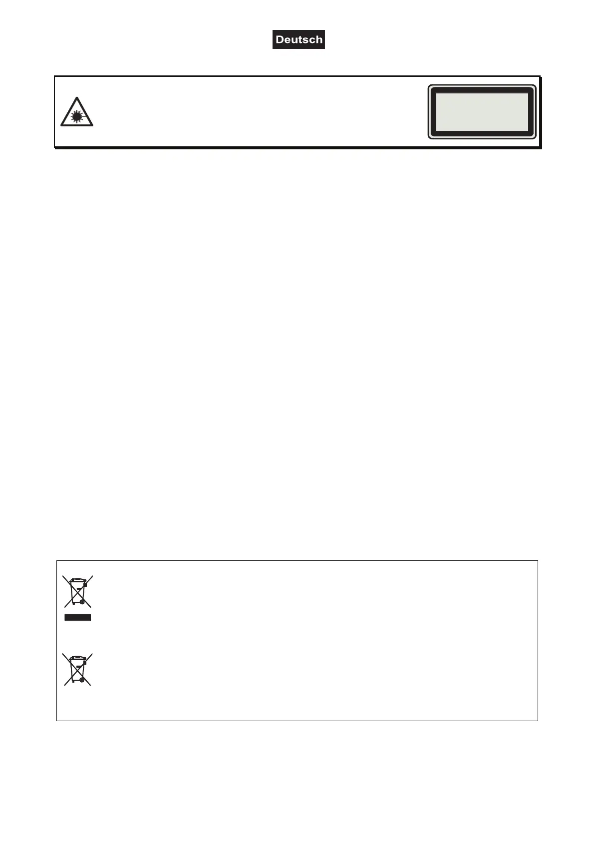 • Blicken Sie nie in den Laserstrahl und richten Sie ihn niemals auf Personen oder Tiere. Laserstrahlung