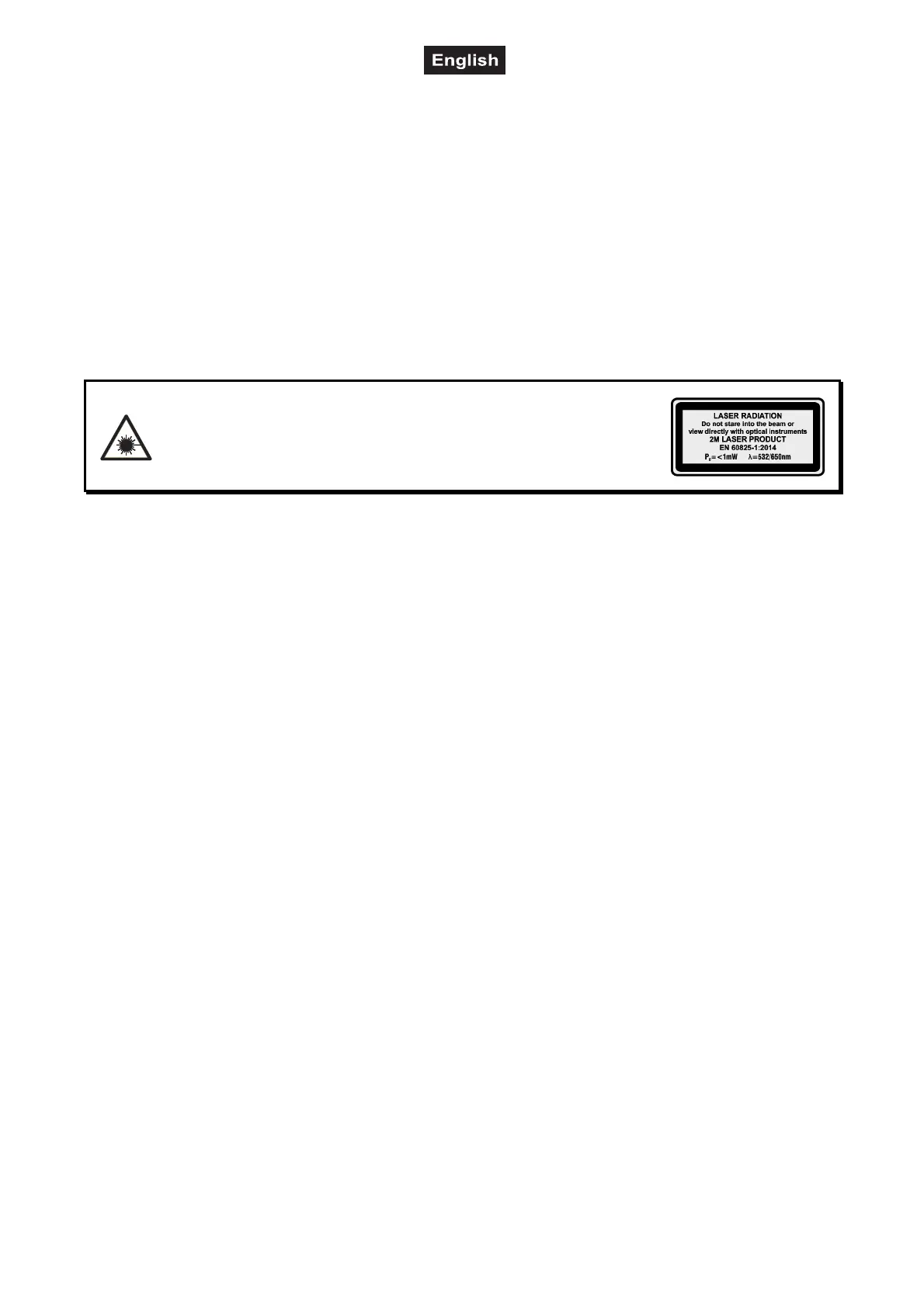 • This device includes a class 2M laser according to the EN 60825-1. The accessible laser radiation is